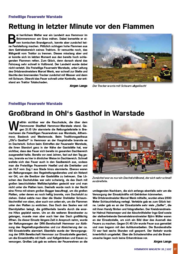 die Freiwilligen Feuerwehren aus Warstade, Althemmoor,